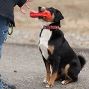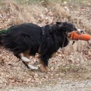 Der Hund muss ruhig sitzen bleiben, bis sein Hundeführer ihm das Zeichen zum Apport gibt.
